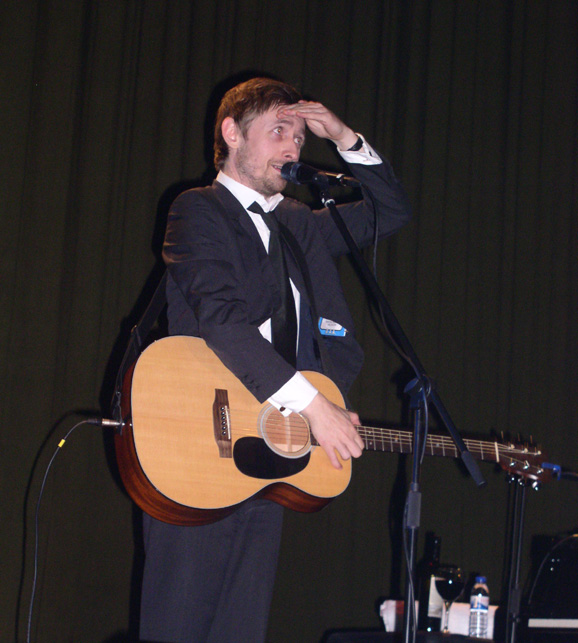 Da anunciada primeira parte dos concertos portugueses dos The Divine Comedy, a cargo de Cathy Davey, ninguém deu pela falta e também não houve muitas queixas. Foi assim que, um pouco depois da hora marcada, Neil Hannon entrou em palco de cachimbo na boca, mala e chapéu de coco como adereços de um fato preto a rigor, mas já de gravata torçida e se sentou ao piano mesmo ao lado de uma garrafa de vinho tinto. Ao jeito de aquecimento, já que a temperatura na sala era, tal como a noite lá fora, bem fria, desculpou-se pela demora no regresso a Portugal enquanto gozava, apontando para todos nós, com o fatal pedido de ajuda financeiro português antes do muito a propósito “The Complete Banker”.